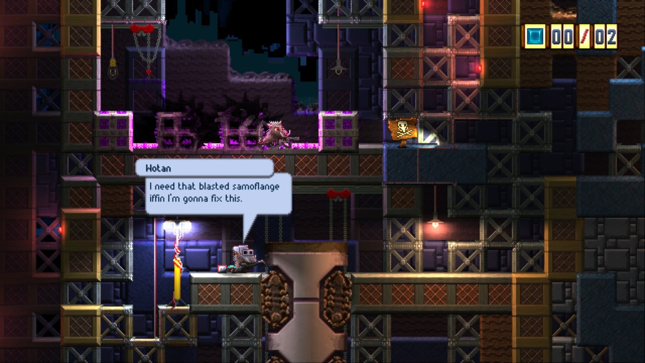 There is one notable obstruction to the joy of relaxed discovery: a forced race against a drill that forces you to think fast rather than take your time. While at first this action sequence seems like a nice change of pace that demands speed as well as brains, it ends up being one of Full Bore's most frustrating detours. The puzzle requires carefully pushing blocks on top of each other as a stack, and one wrong move can ruin the entire thing (while you can reset to your last checkpoint, there is no “undo” button). The window of time you have to solve the puzzle is tiny, giving you little time to move and less time to think. As a result, I banged my head against the boxes repeatedly (literally, in the boar’s case) until I finally lucked into a solution. Normally I would have been able to skip such a frustrating experience, but it wasn’t an option in this case.